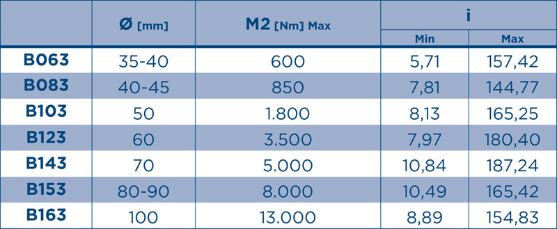 · 可用版本:B - 适用于电动机联轴节,IB - 自带实心输入轴,CB - 自带紧凑型电动机,PB - 适· 用于电动机弹性联轴节