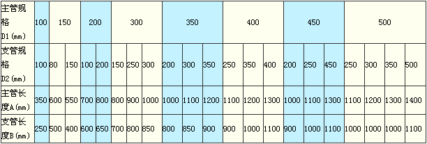 60°三通尺寸表:(单位:mm)