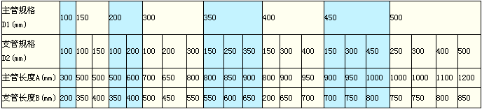 30°三通尺寸表:(单位:mm)